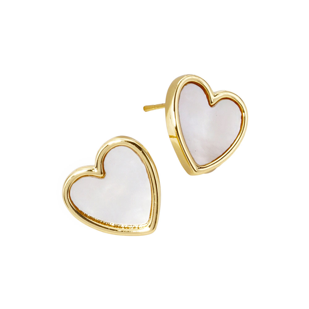 • Charming heart shaped mother of pearl stud earrings featuring a bold outlined design that adds a playful and modern touch. Lightweight and easy to wear, these cute studs make a perfect everyday accessory or a thoughtful gift for someone who loves fun statement pieces.