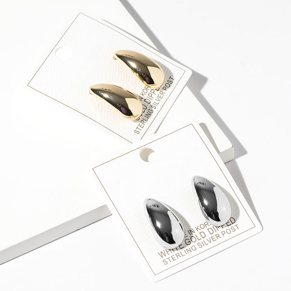 • Classic teardrop stud earrings featuring a smooth, reflective surface and clean silhouette. Designed for effortless styling, these studs offer a timeless shape that works for everyday wear or elevated looks, making them a versatile addition to any modern jewelry collection.