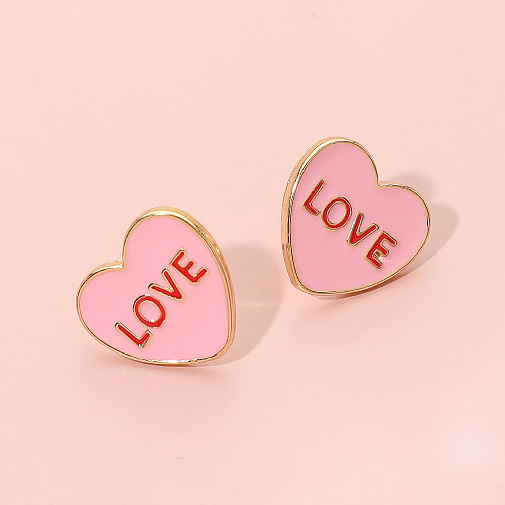 Details • Size : 0.6" X 0.6" • Post Back • Playful heart stud earrings featuring a bold LOVE motif with a sleek, modern silhouette that adds charm and personality to any outfit. Perfect for everyday styling or special moments, these lightweight statement studs bring a fun, romantic touch to both casual and dressed-up looks. • Lead and Nickel Compliant