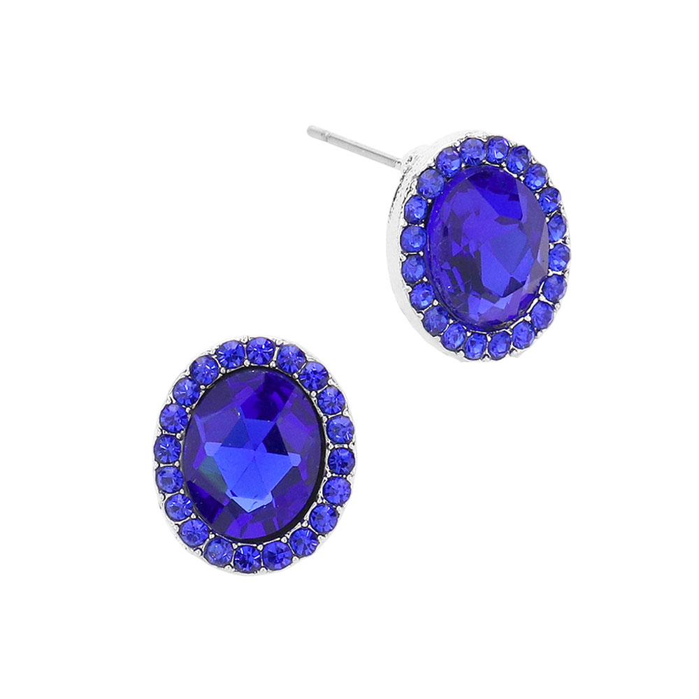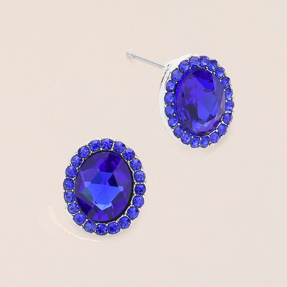 Oval Stone Stud Evening Earrings