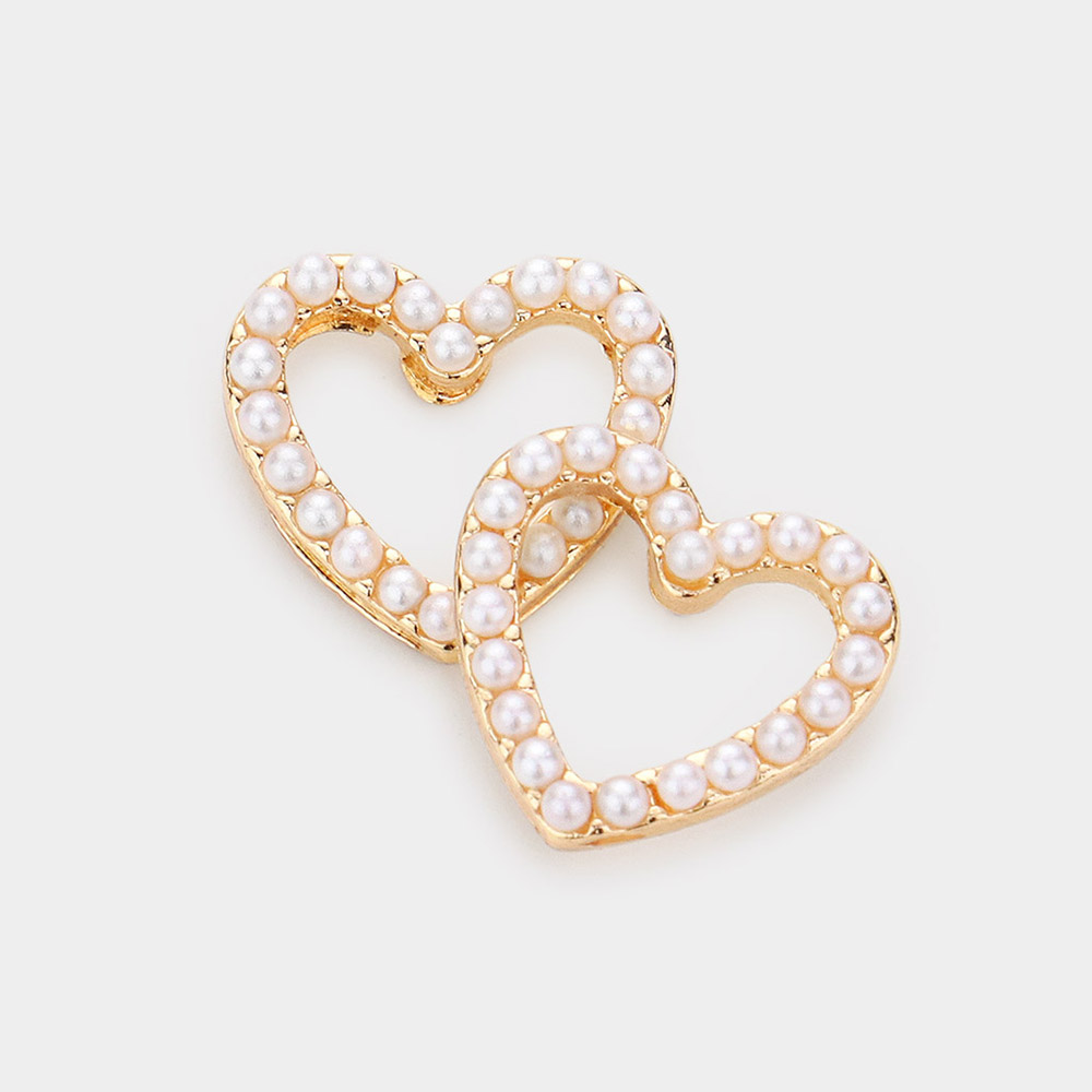 Pearl Embellished Open Heart Stud Earrings