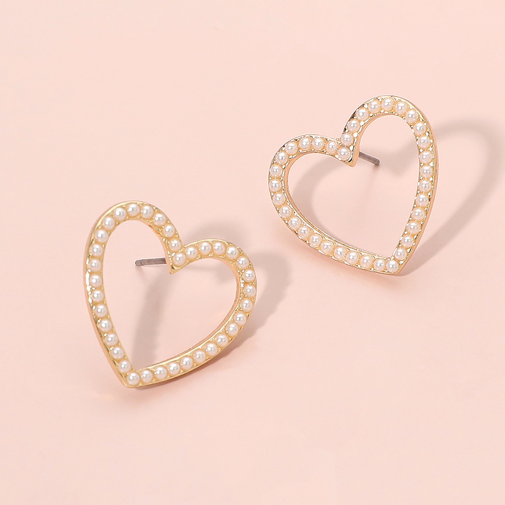 Pearl Trim Open Heart Stud Earrings Pearl Trim Open Heart Stud Earrings