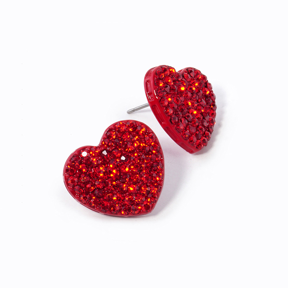 Details • Size : 0.75" X 0.75" • Post Back • Cute heart stud earrings covered in shimmering stones for a bold, eye-catching shine. Lightweight and easy to wear, perfect for gifting or adding a playful accent to everyday outfits. A fun, sparkling accessory that elevates any look. • Lead and Nickel Compliant