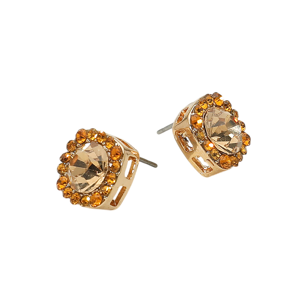 • Chic round stud earrings featuring a brilliant central stone surrounded by a halo of sparkling accents. Lightweight and versatile, these earrings bring elegance to everyday wear and add a refined touch to evening looks. Perfect for gifting or enhancing any jewelry collection with timeless shine.