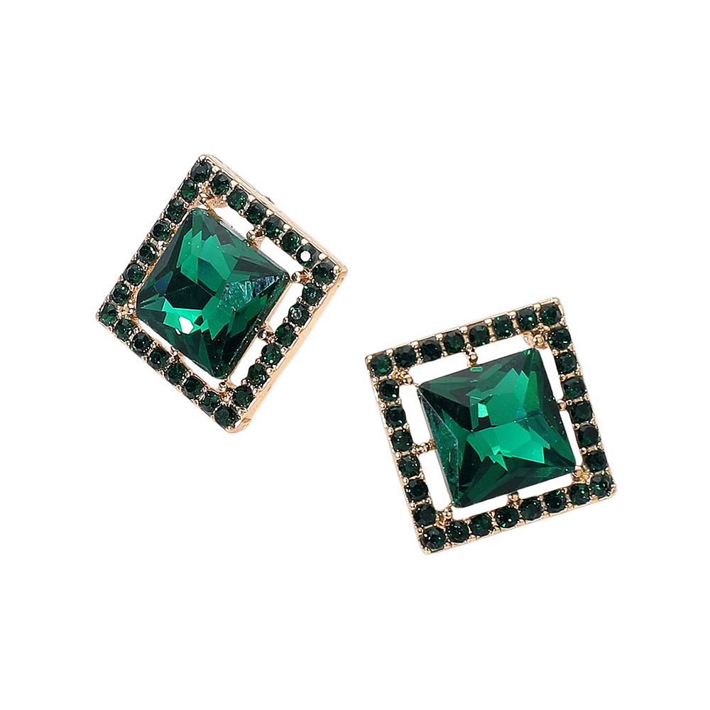 • Elegant square-cut gemstone stud earrings featuring a framed design with sparkling accent stones. A chic and modern accessory that adds refined shine to both everyday outfits and special occasions.