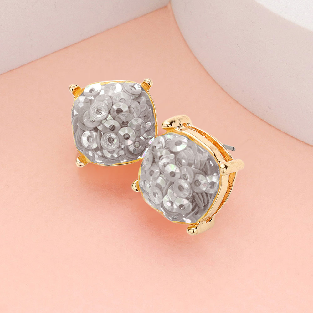 • Elevate your everyday style with these shimmering square stud earrings featuring a radiant cushion design. Their sequin-like sparkle catches the light beautifully, adding a modern yet elegant flair that’s perfect for both casual outings and evening occasions.