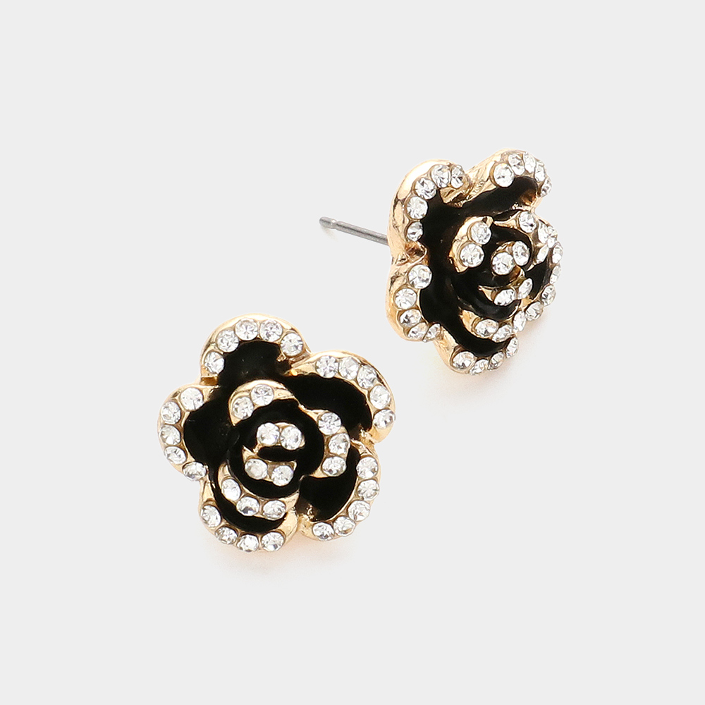 Stone Paved Rim Enamel Rose Pendant Necklace