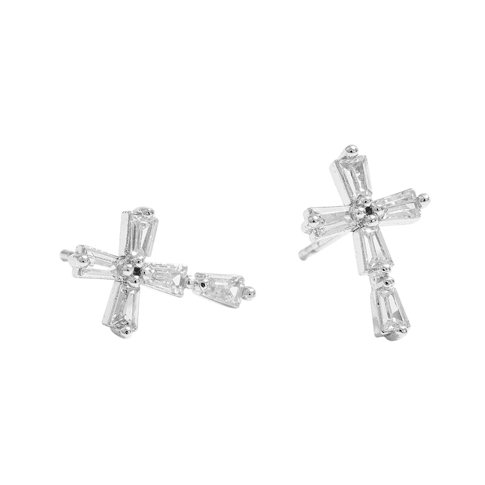 White Gold Dipped CZ Stone Cross Stud Earrings White Gold Dipped CZ Stone Cross Stud Earrings White Gold Dipped CZ Stone Cross Stud Earrings