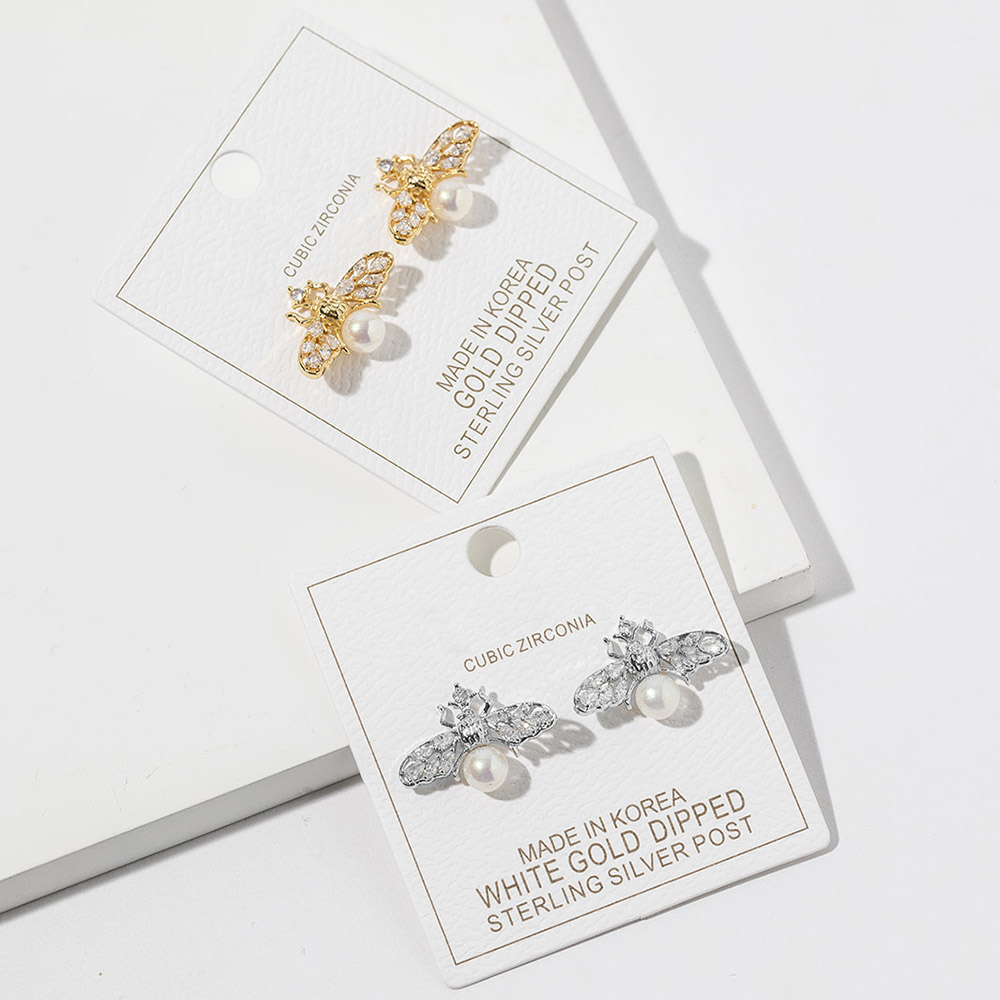 • Elegant bee-inspired stud earrings featuring sparkling cubic zirconia wings and a delicate pearl accent. Designed to add a refined yet playful touch to everyday styling, these studs are perfect for boutiques seeking nature-inspired jewelry with timeless charm and versatile appeal.
