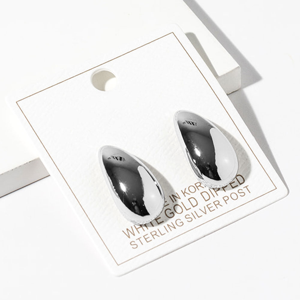 • Classic teardrop stud earrings featuring a smooth, reflective surface and clean silhouette. Designed for effortless styling, these studs offer a timeless shape that works for everyday wear or elevated looks, making them a versatile addition to any modern jewelry collection.
