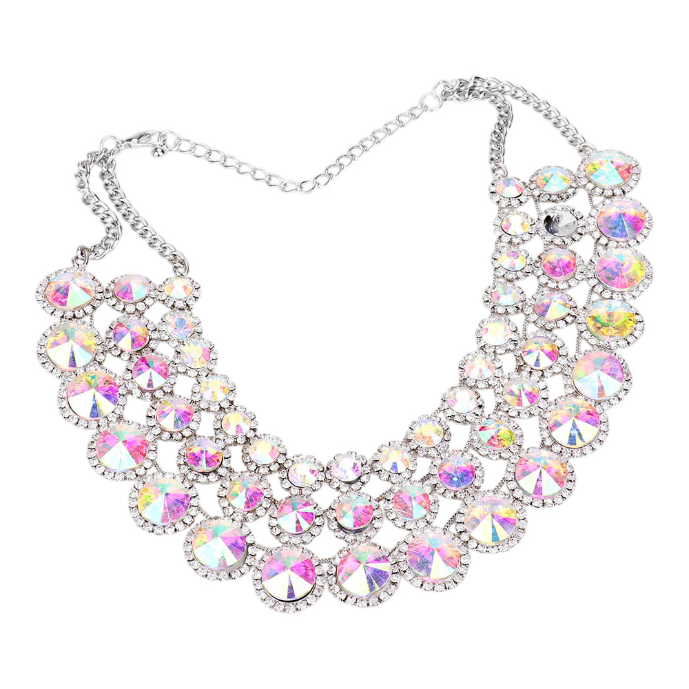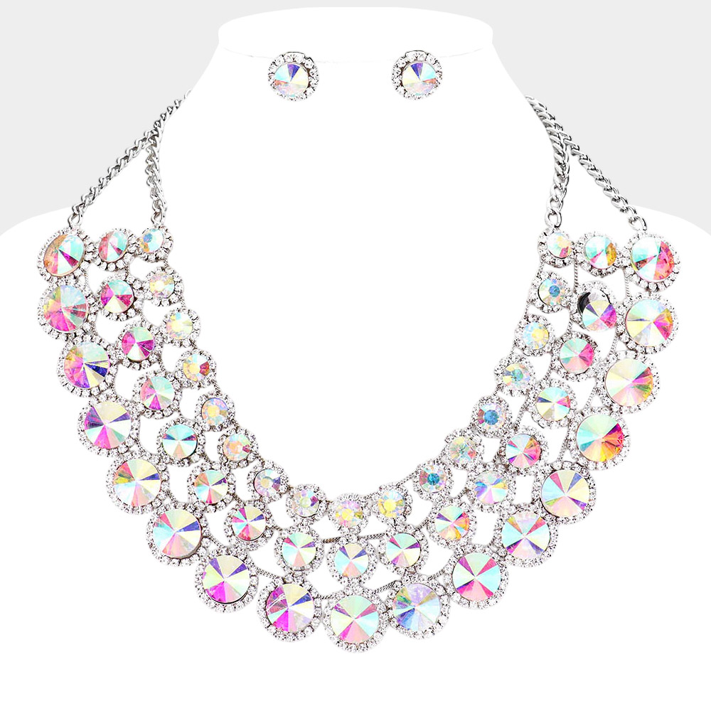• Elegant statement necklace and earrings set featuring layered round-cut gems with dazzling shine. Perfect for parties, weddings, or evening events, this bold accessory adds glamour and sophistication to any outfit, making it a must-have for standout fashion styling.