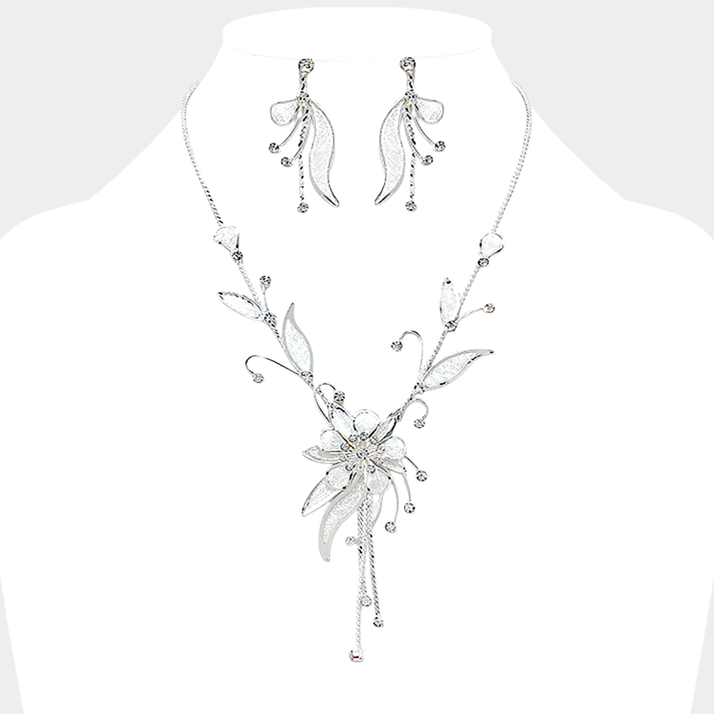 Crystal rhinestone metal mesh flower necklace