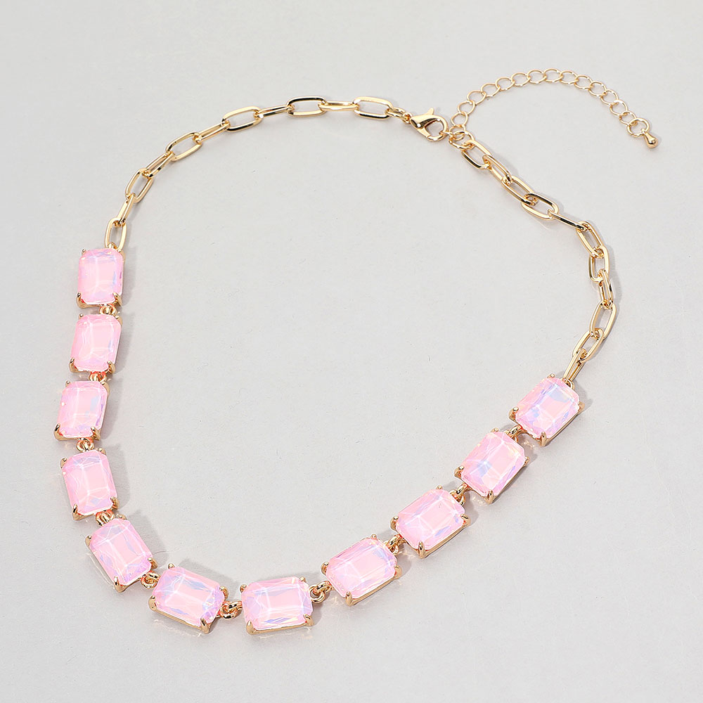 • This elegant gemstone chain necklace features a row of precisely cut stones linked with a sleek chain for a refined, modern look. Its adjustable closure ensures a comfortable fit, making it a sophisticated accessory for formal occasions, evening wear, or adding a statement touch to everyday style.