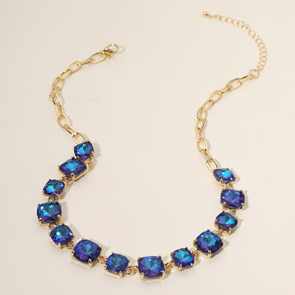 • Elevate your style with this stunning square cut gemstone statement necklace. Featuring shimmering faceted stones linked in a classic design, it offers a chic adjustable fit. Perfect for evening wear, weddings, parties, or adding a sophisticated sparkle to your everyday look.