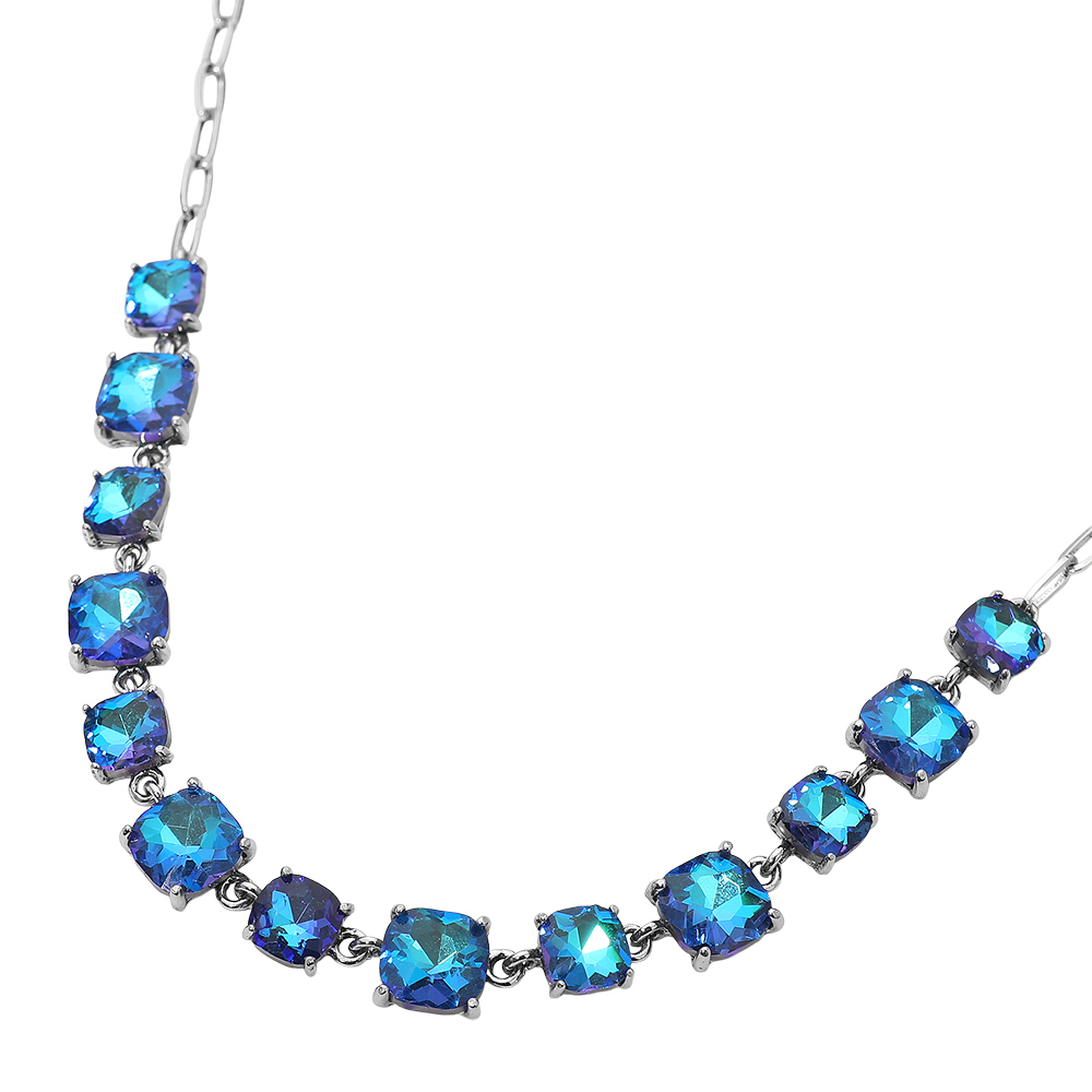 Details • Necklace Size : 16" + 2.75" L • Decor Size : 0.5" L • Elevate your style with this stunning square cut gemstone statement necklace. Featuring shimmering faceted stones linked in a classic design, it offers a chic adjustable fit. Perfect for evening wear, weddings, parties, or adding a sophisticated sparkle to your everyday look. • Lead and Nickel Compliant
