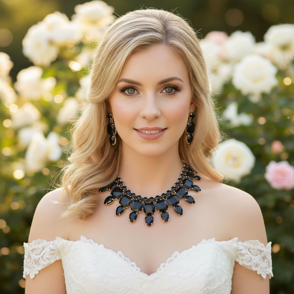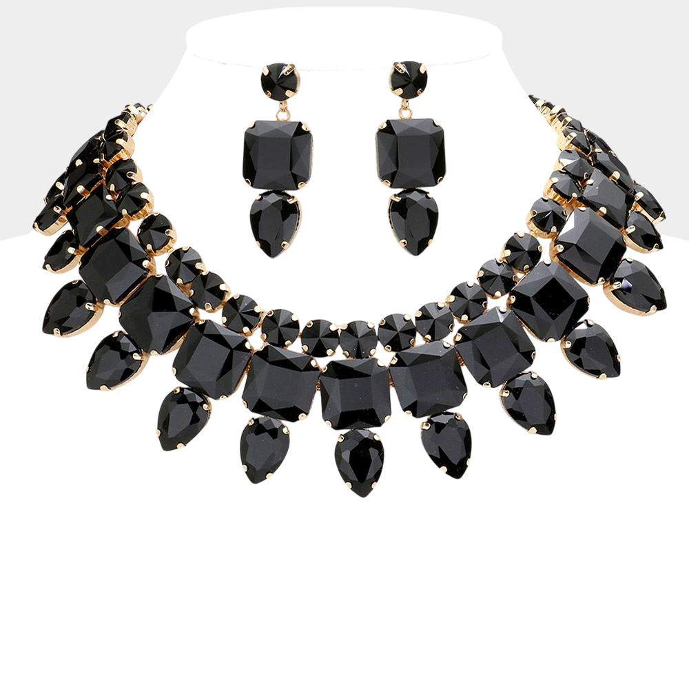 • Stunning statement jewelry set featuring a dramatic necklace and matching earrings adorned with large gemstones. Perfect for special occasions, parties, or evening events, adding glamour and sophistication to any outfit. A show-stopping accessory for an elegant, confident look.