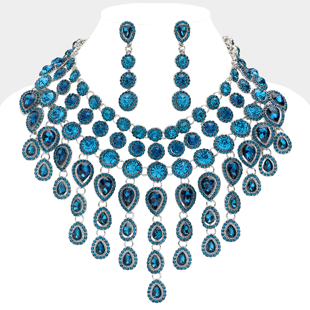 Round Teardrop Stone Cluster Evening Bib Necklace