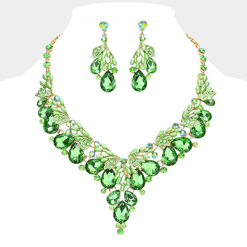 Teardrop Glass Crystal Pearl Vine Evening Necklace