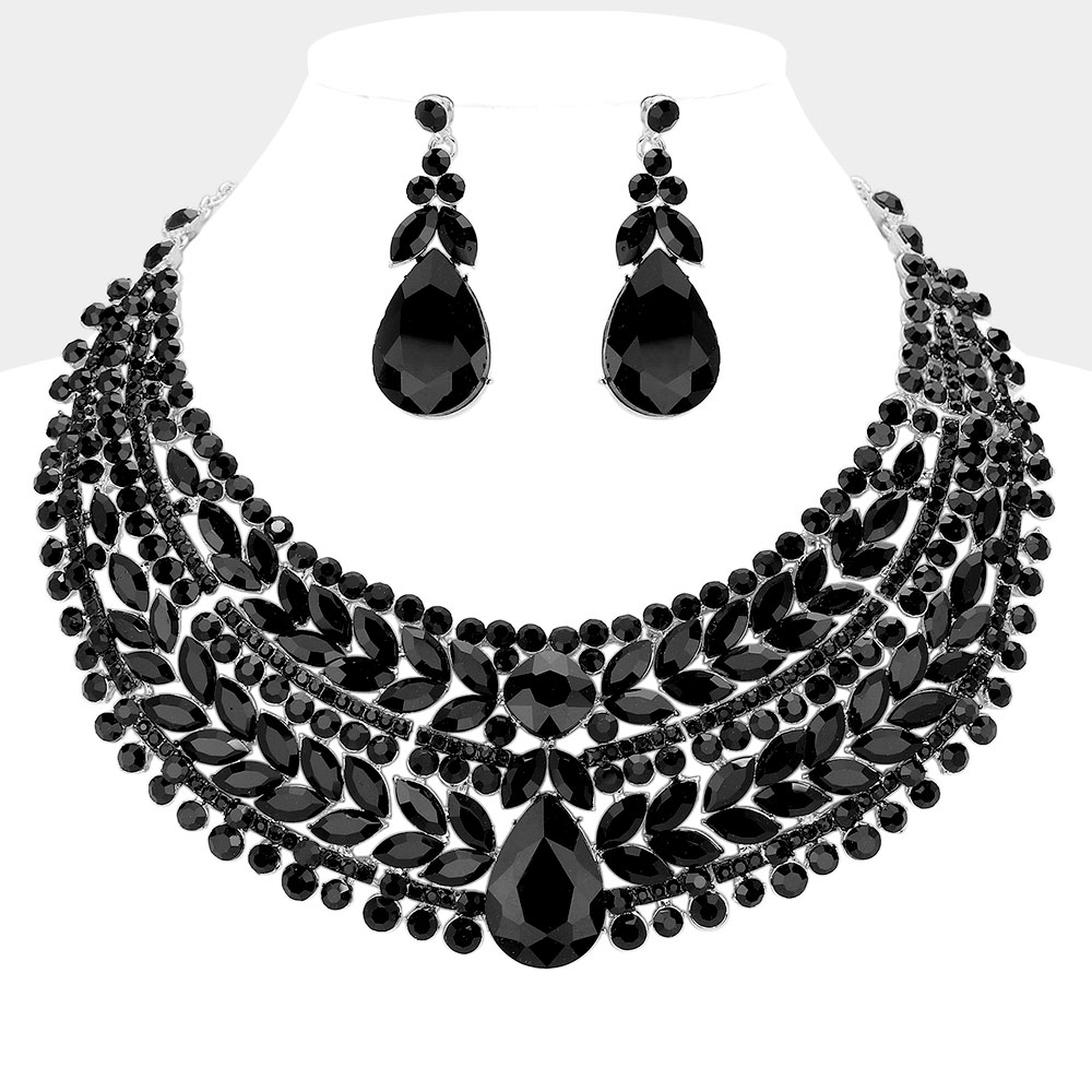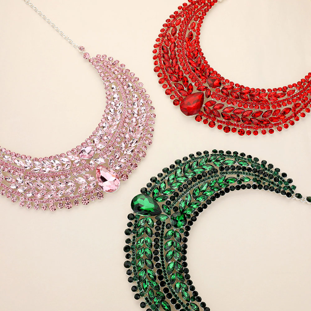 Teardrop Stone Accented Marquise Round Stone Embellished Chunky Collar Evening Necklace