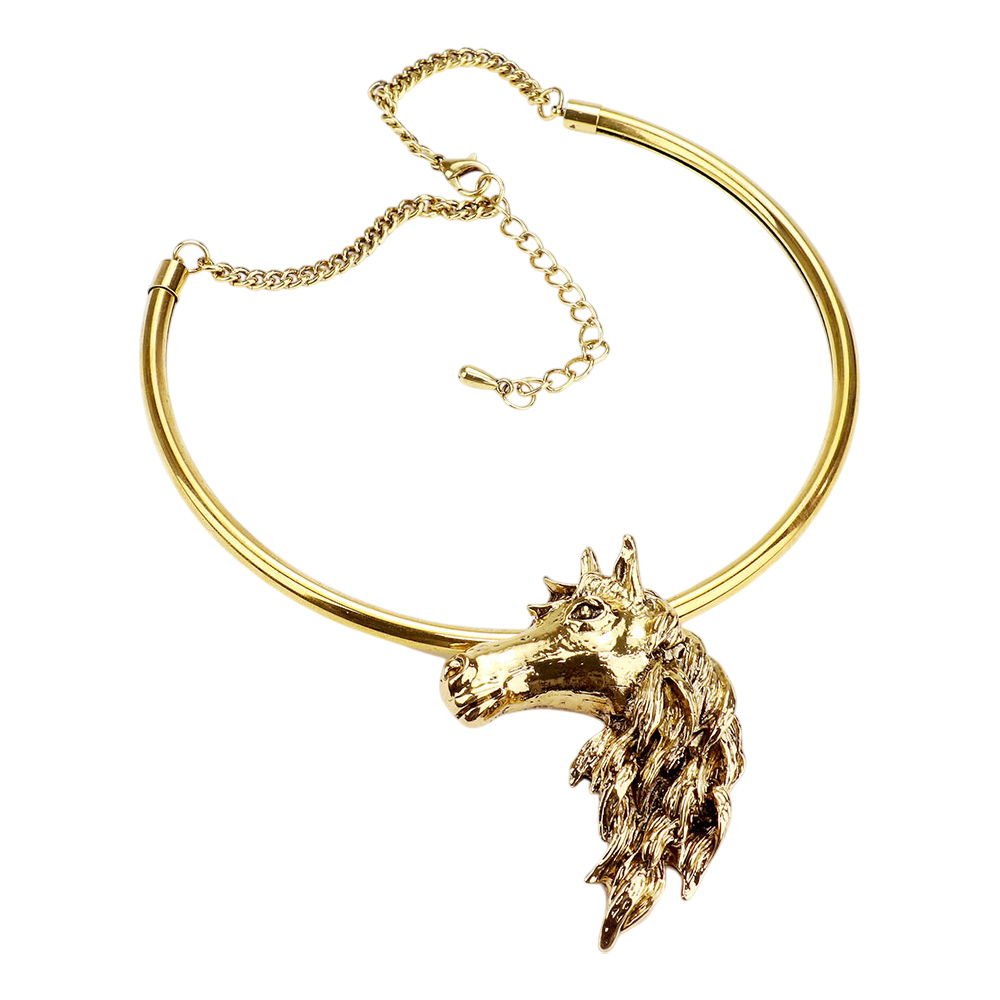 Antique Metal Horse Face Choker Necklace
