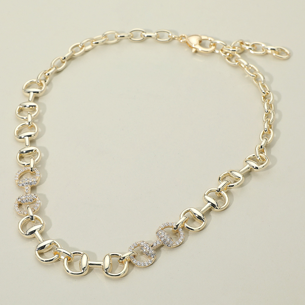Details • Necklace Size : 18" + 2.15" L • Decor Size : 0.5" L • Elevate your look with this chic chain link necklace featuring alternating polished and crystal-embellished links. Designed to add subtle shimmer and timeless sophistication, it’s the perfect accessory for both casual elegance and evening glamour. • CZ Cubic Zirconia • Gold Dipped