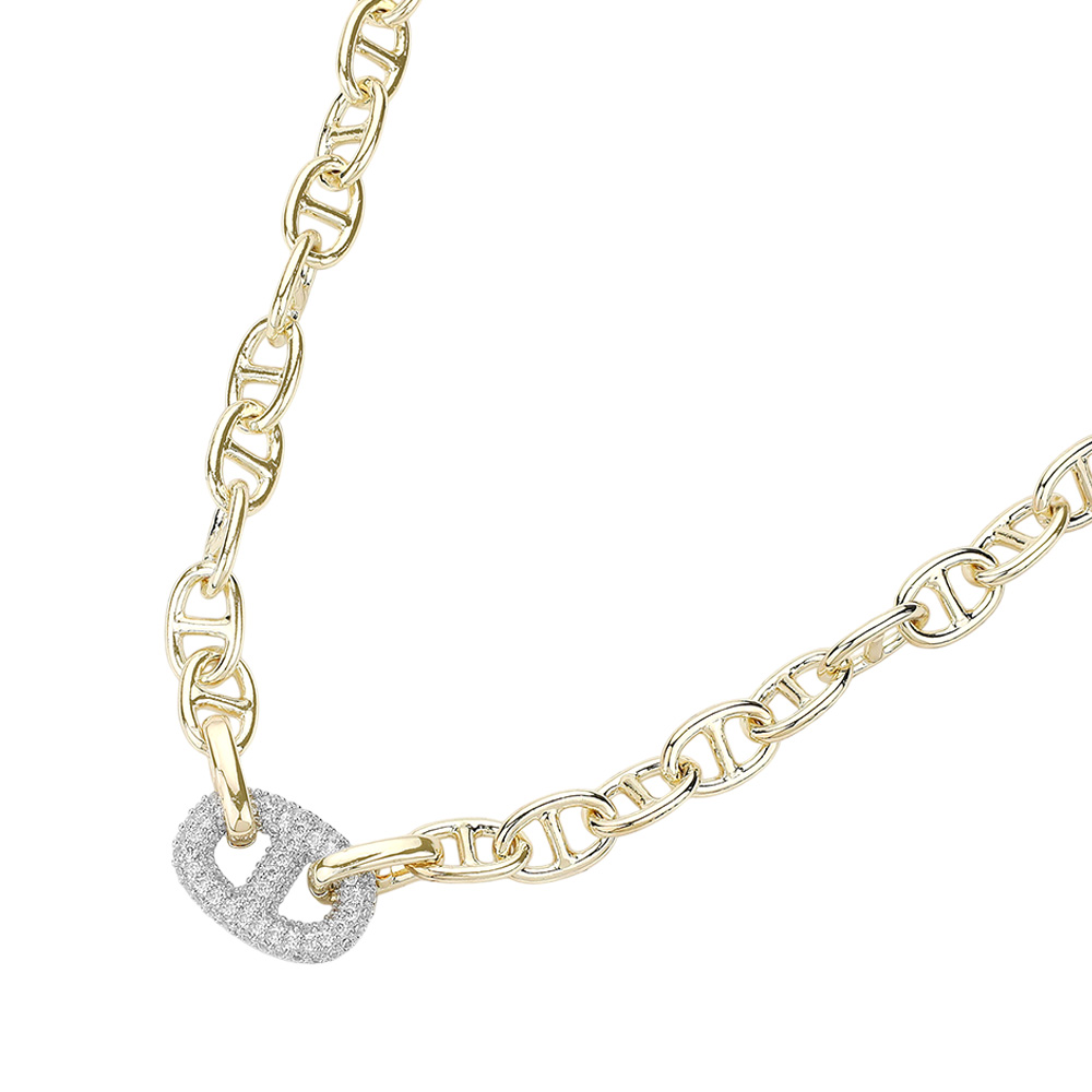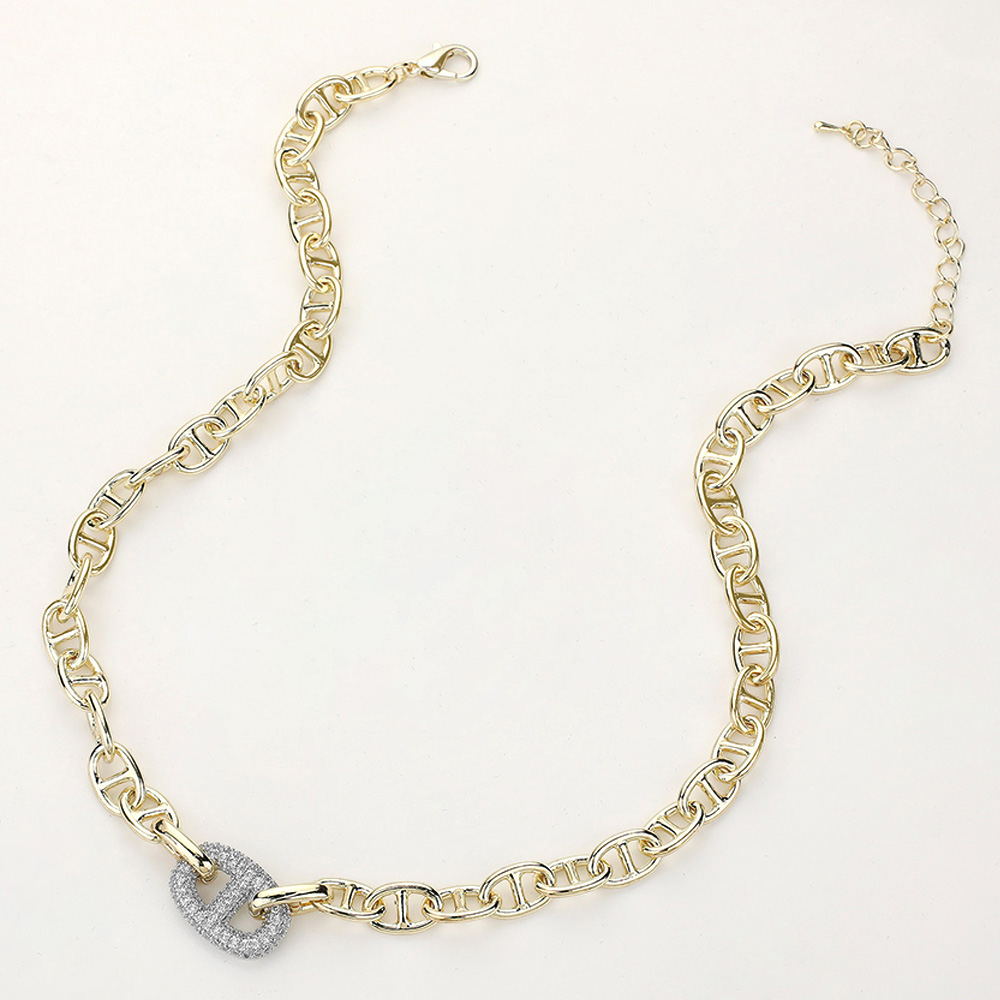 Details • Necklace Size : 17" + 2.5" L • Decor Size : 0.6" L • Elevate your jewelry collection with this refined chain-link necklace featuring a shimmering accent pendant that adds a touch of brilliance. Its sleek, versatile design makes it perfect for layering or wearing solo, offering a polished finish that enhances everyday outfits and special-occasion looks. • Gold Dipped • CZ Cubic Zirconia