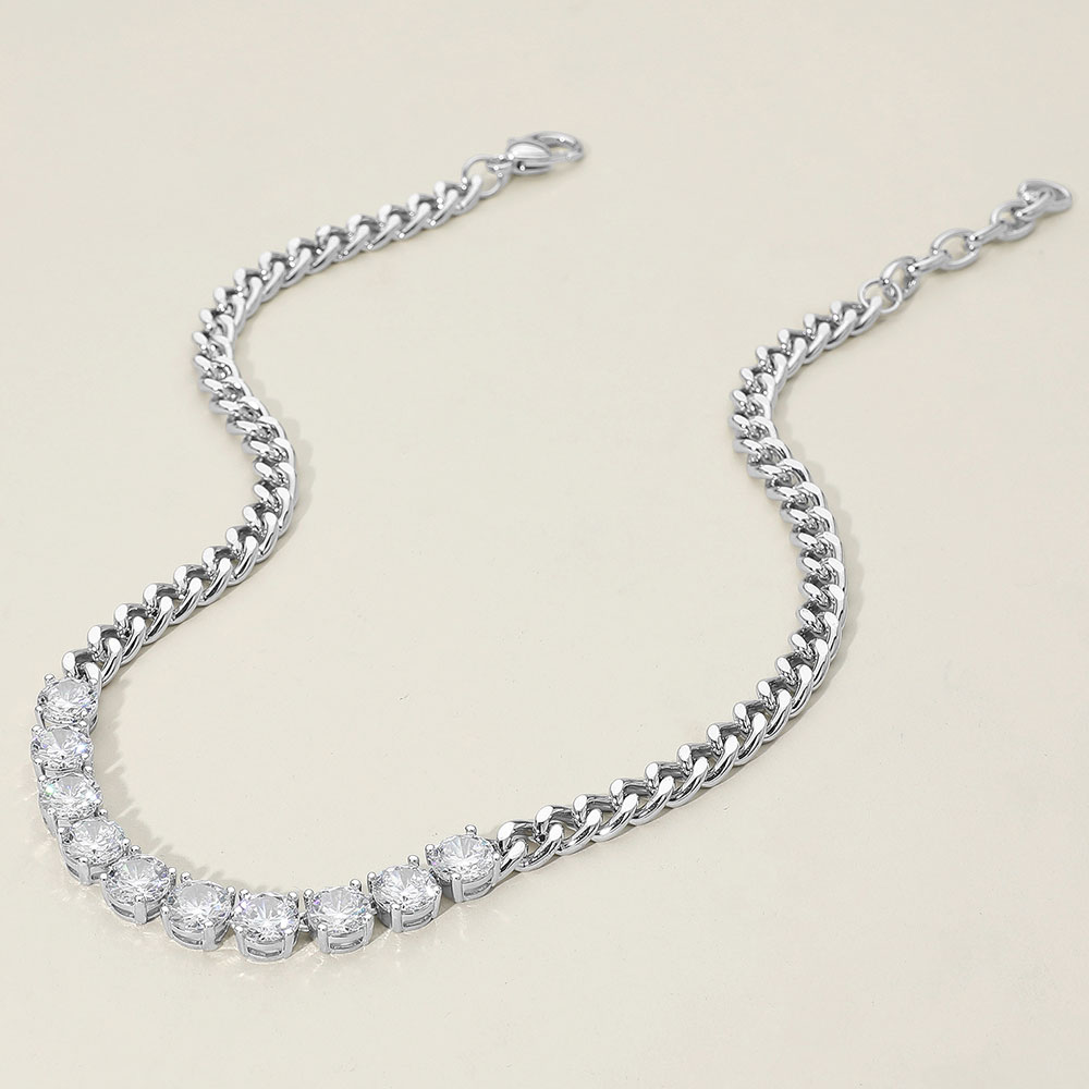 Details • Necklace Size : 18" + 2.25" L • Decor Size : 0.4" L • Elevate your style with this striking cubic zirconia necklace featuring a bold chain accent and sparkling centerpiece. Designed to bring modern elegance and eye-catching brilliance to everyday looks or special occasions. • Gold Dipped • CZ Cubic Zirconia