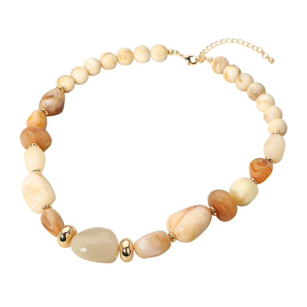 • Elevate your style with this 18" beaded necklace featuring a mix of smooth round and chunky polished stones. Accented with metallic spacers for added shine, this statement piece blends organic charm with modern elegance, making it perfect for everyday wear or special occasions.