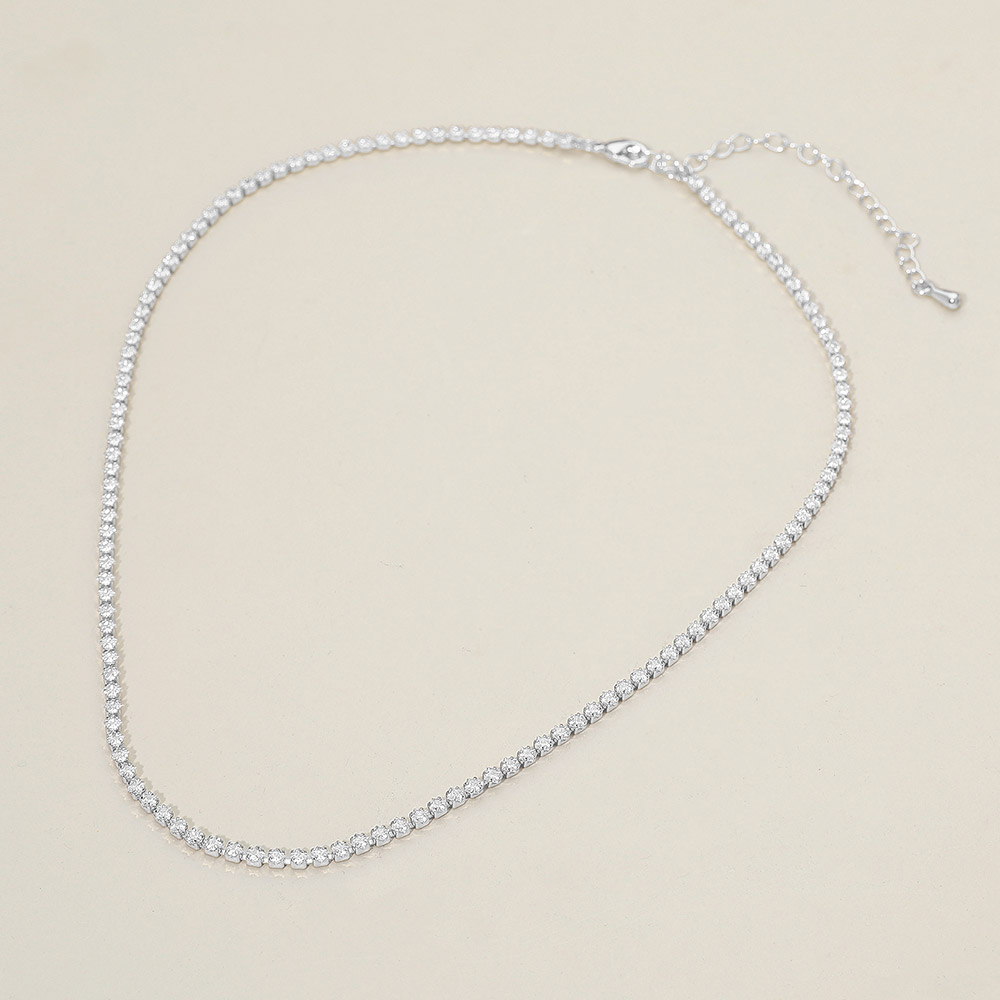 Details • Necklace Size : 16" + 3" L • Decor Size : 0.1" L • Elegant tennis necklace featuring a sleek line of sparkling crystals for a refined, timeless look. Perfect for layering or wearing solo to add subtle sophistication to any outfit. A versatile accessory that enhances both everyday and special occasion styles with effortless glamour. • Gold Dipped • Lead and Nickel Compliant