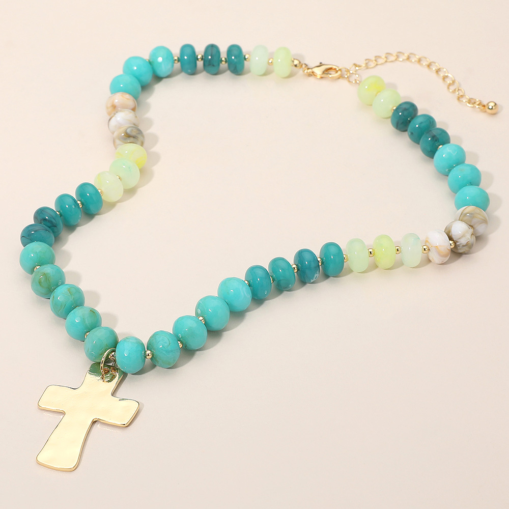 18K Gold Dipped Hammered Cross Plate Pendant Chunky Resin Disc Beaded Necklace 18K Gold Dipped Hammered Cross Plate Pendant Chunky Resin Disc Beaded Necklace