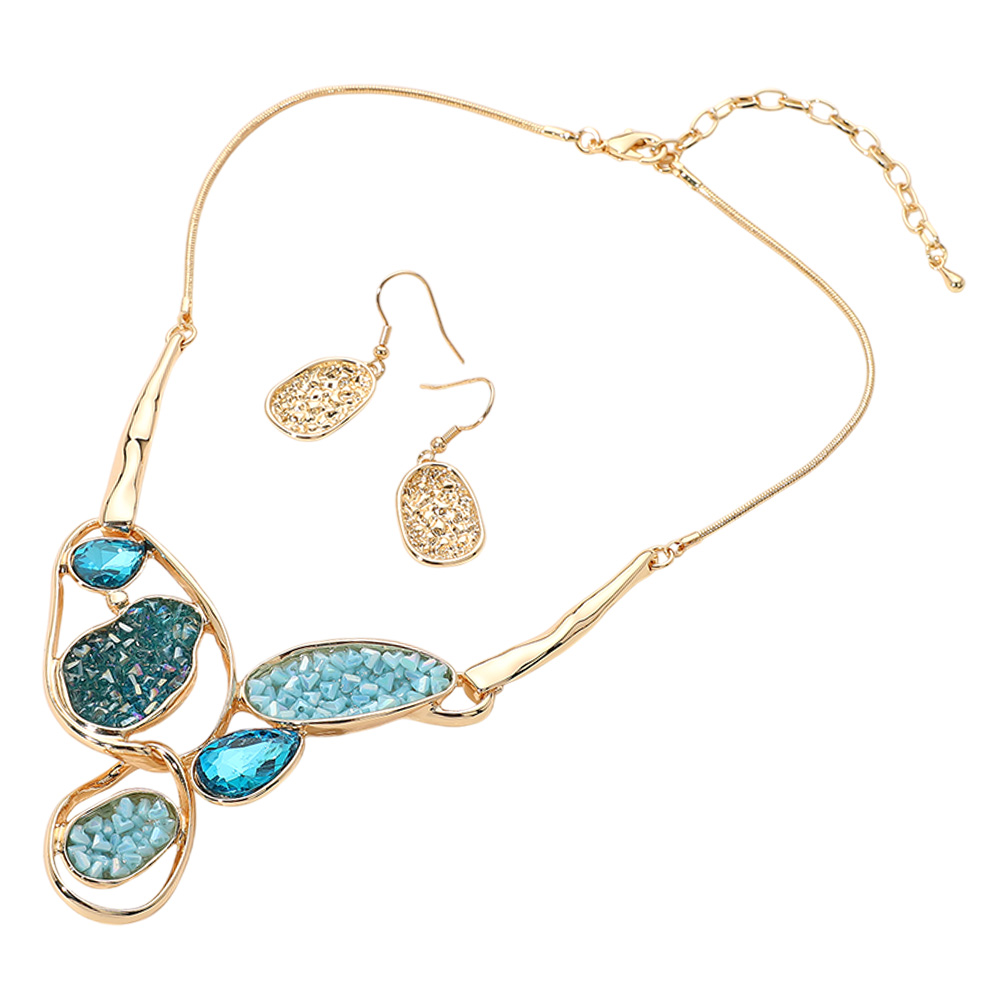 Abstract Stone Faceted Beads Embellished Necklace