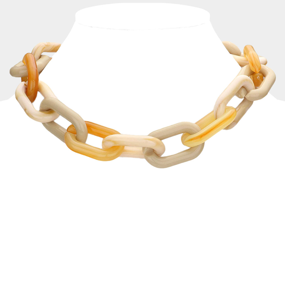 Details • Necklace Size : 17" L + 2.5" L • Decor Size : 0.8" L • Bold and fashion-forward, this chunky link chain necklace features a retro-inspired design with mixed tones for a unique layered look. Perfect for making a stylish statement in any casual or dressed-up outfit. • Lead and Nickel Compliant