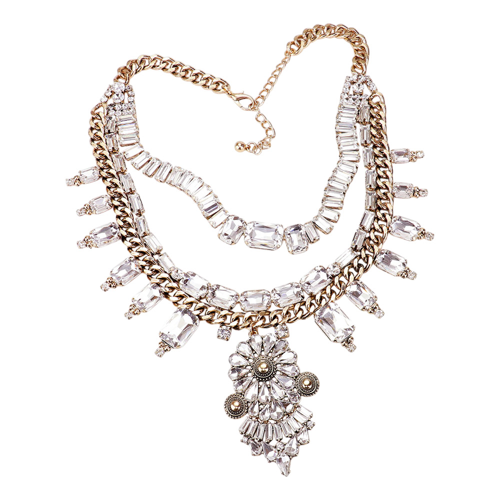Antique Stone Embellished Flower Statement Necklace
