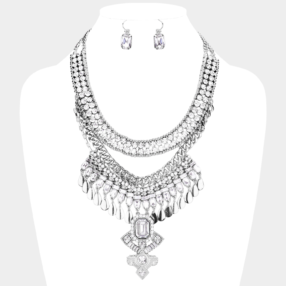 Chunky Flower Engraved Medallion Charm Station Statement Necklace
