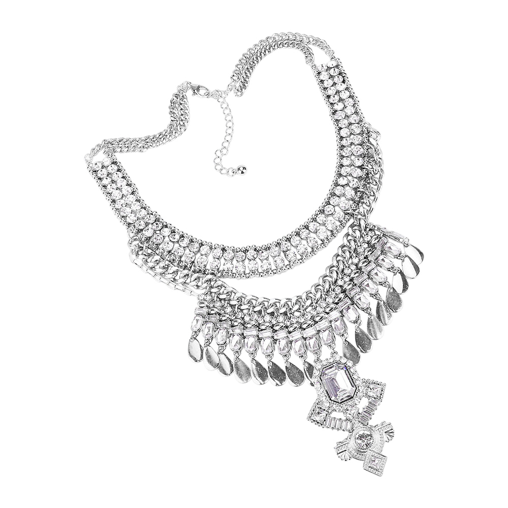 Stone Cluster Embellished Cross Dangle Statement Earrings