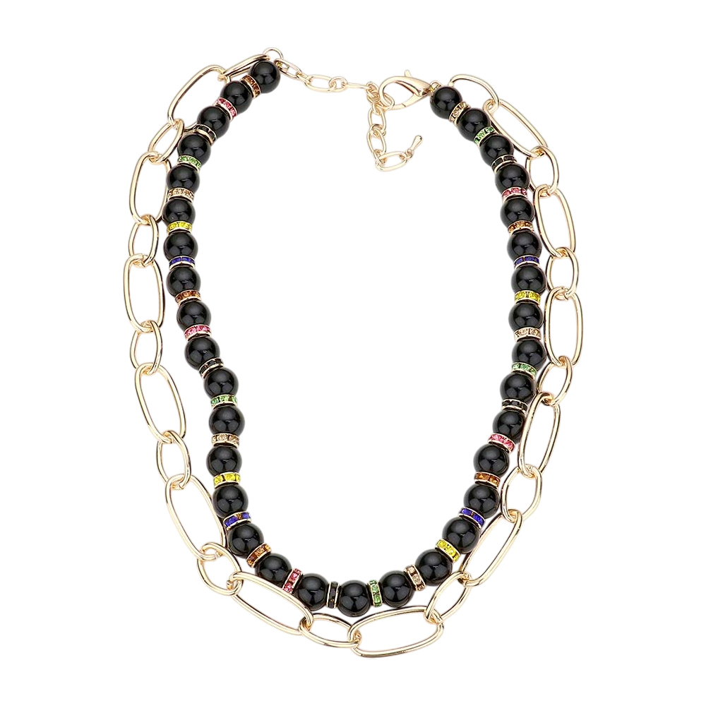 Beaded Open Metal Oval Link Double Layered Necklace