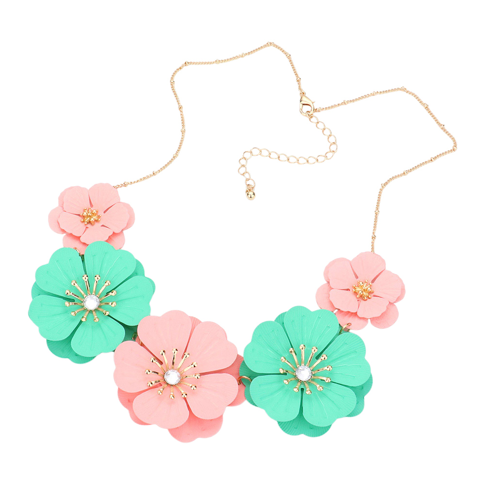 Faux Leather Flower Cluster Wrap Snap Bracelet