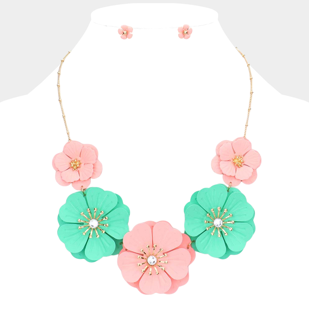 Stone Center Flower Accented Twisted Open Metal Circle Layered Earrings