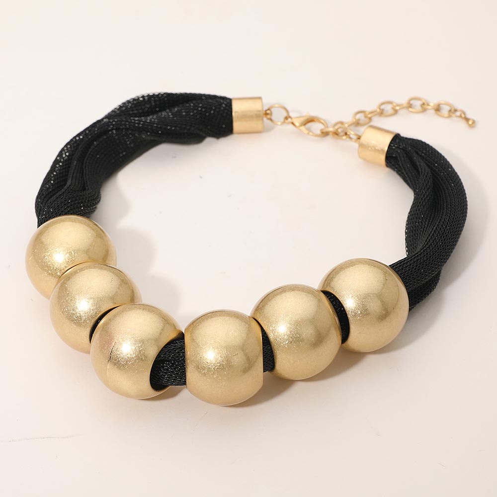 Details • Necklace Size : 18" + 3" L • Decor Size : 1.25" L • Make a striking statement with this bold mesh chain necklace featuring large rounded beads for a modern, sculptural look. Adjustable for a perfect fit, it adds instant impact to casual or dressy outfits. A standout accessory for gifting or elevating any jewelry collection with contemporary flair. • Lead and Nickel Compliant
