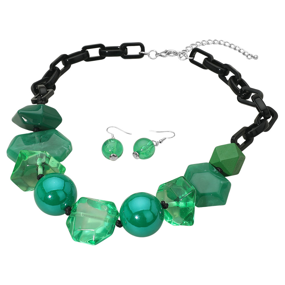 • Create bold impact with this geometric bead necklace and matching earring set designed for statement styling. Perfect for elevating everyday looks or completing evening outfits, it offers coordinated elegance and modern flair that makes a thoughtful gift or standout personal accessory.