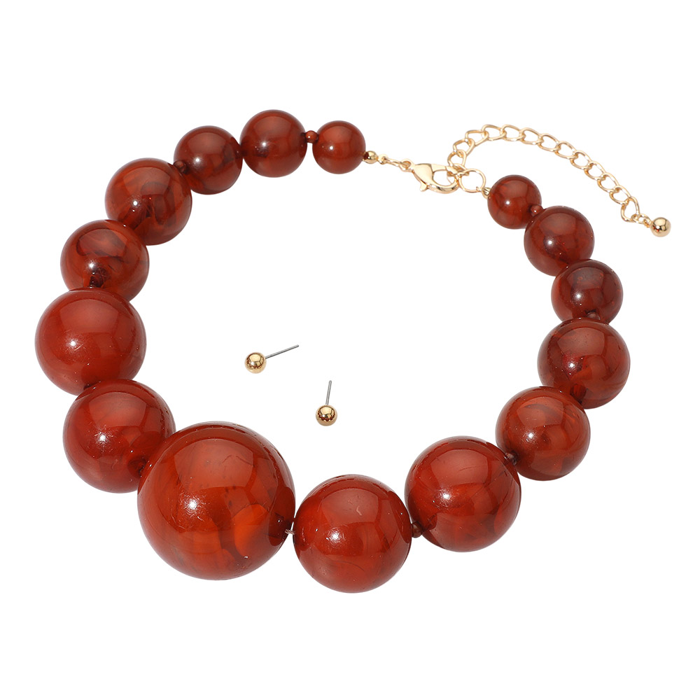 Bold Marbled Resin Ball Beaded Statement Necklace