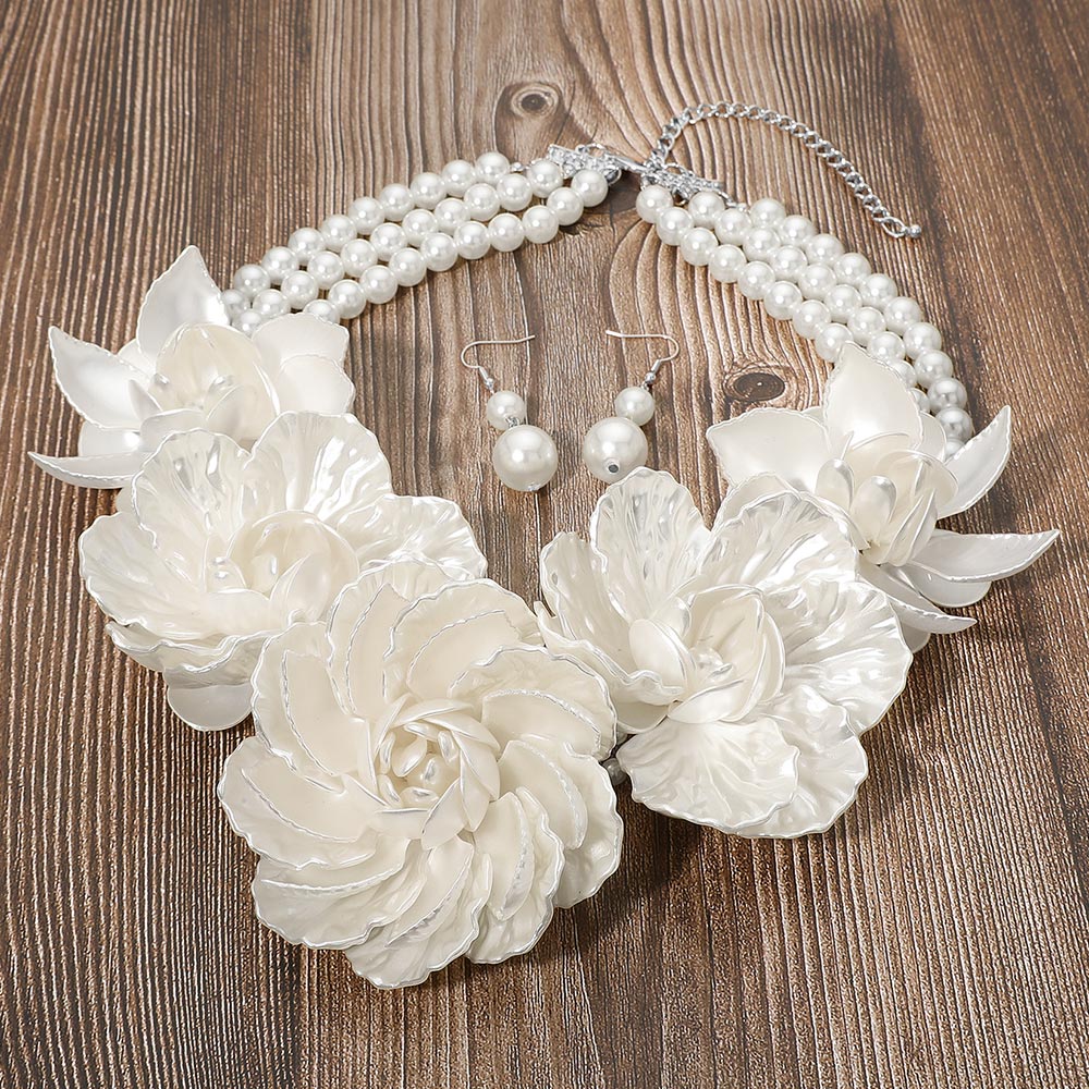 • An elegant statement necklace set featuring layered floral accents and coordinating earrings with an adjustable fit. Designed to elevate formal looks, weddings, parties, and special occasions, offering graceful style and standout detail for memorable outfits.