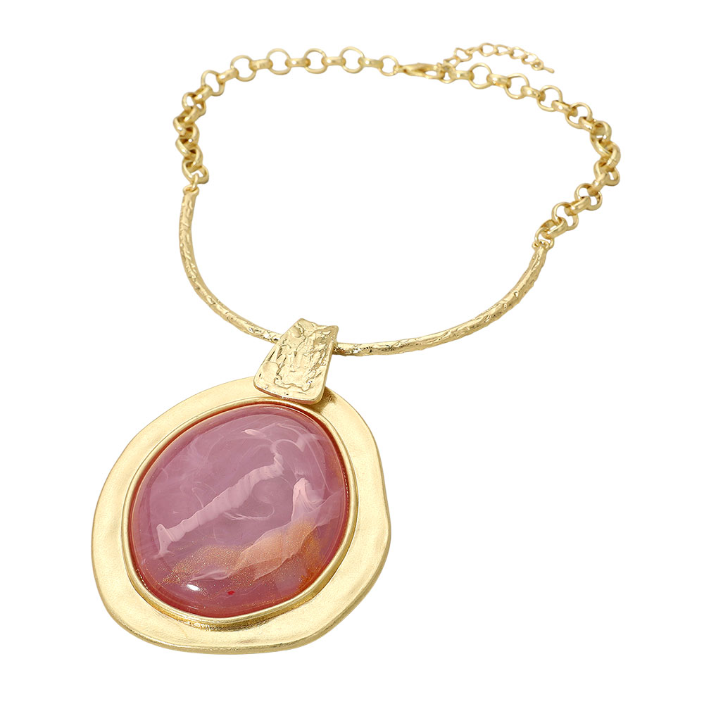 Bold Sculptural Oval Resin Plate Pendant Accent Statement Necklace