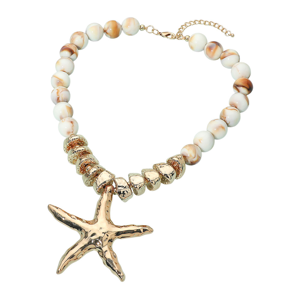 • Bold beaded necklace featuring a sculpted starfish pendant and textured spacer accents for a coastal-inspired statement look. Perfect for vacations, beach outings, summer events or adding playful ocean-themed charm to everyday outfits with eye-catching style.