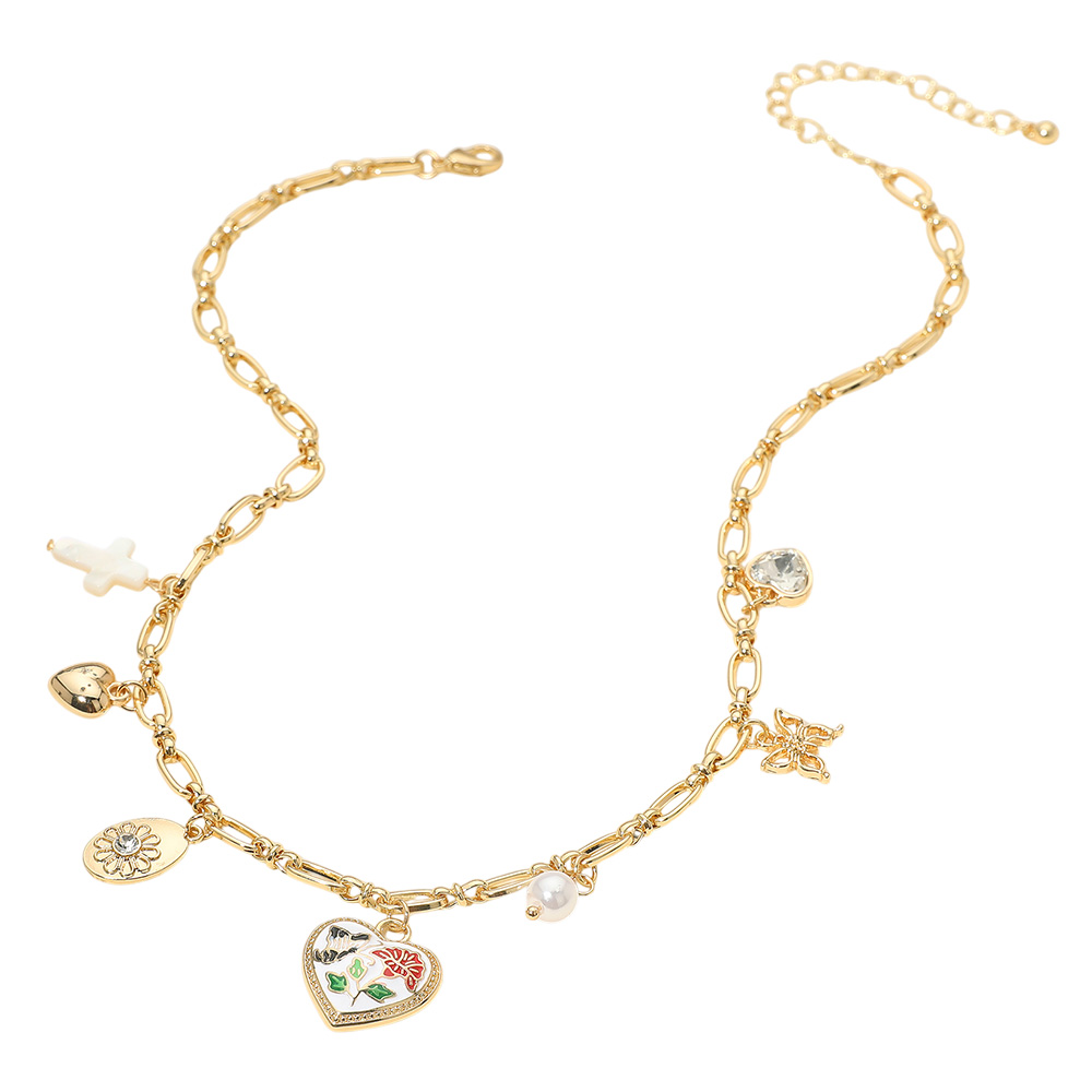 Butterfly Flower Enamel Detailed Heart Pendant Charm Station Necklace Butterfly Flower Enamel Detailed Heart Pendant Charm Station Necklace Butterfly Flower Enamel Detailed Heart Pendant Charm Station Necklace
