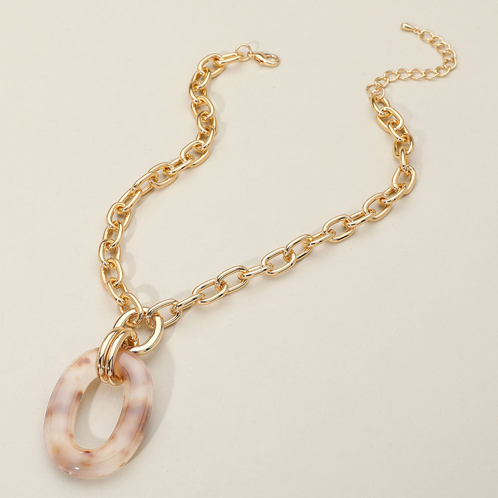 Celluloid Acetate Oval Ring Pendant Chunky Chain Necklace