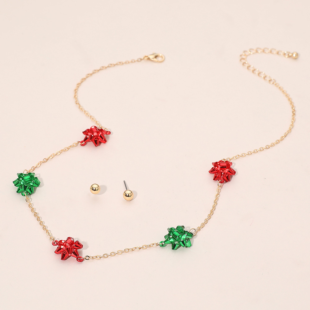 Details • Size : 17" + 2.5" L • Decor Size : 0.5" L • Earrings Size : 0.2" L • Charming necklace and earring set featuring bow-shaped accents for a fun and festive look. Perfect for celebrations, parties, or seasonal gatherings, this playful jewelry set adds a cheerful touch to your outfit while maintaining a stylish and coordinated appeal. • Lead and Nickel Compliant