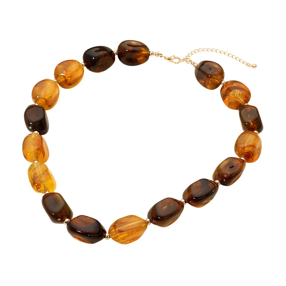 Details • Necklace Size : 18" + 3" L • Decor Size : 0.75" L • This chunky statement necklace features smooth marbled beads that add bold style to any outfit. Its unique texture and striking design make it perfect for elevating everyday looks or complementing special occasion wear, offering a fashionable accent that stands out with modern charm. • Lead and Nickel Compliant