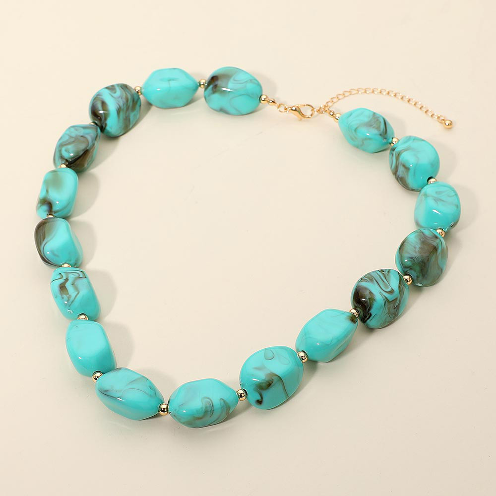 Chunky Marbled Resin Pebble Beaded Statement Necklace Chunky Marbled Resin Pebble Beaded Statement Necklace