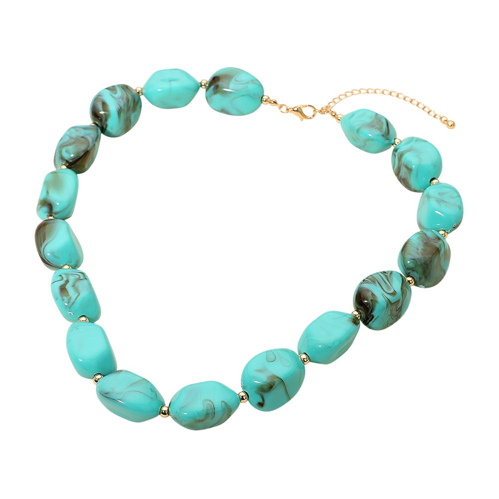 Chunky Marbled Resin Pebble Beaded Statement Necklace